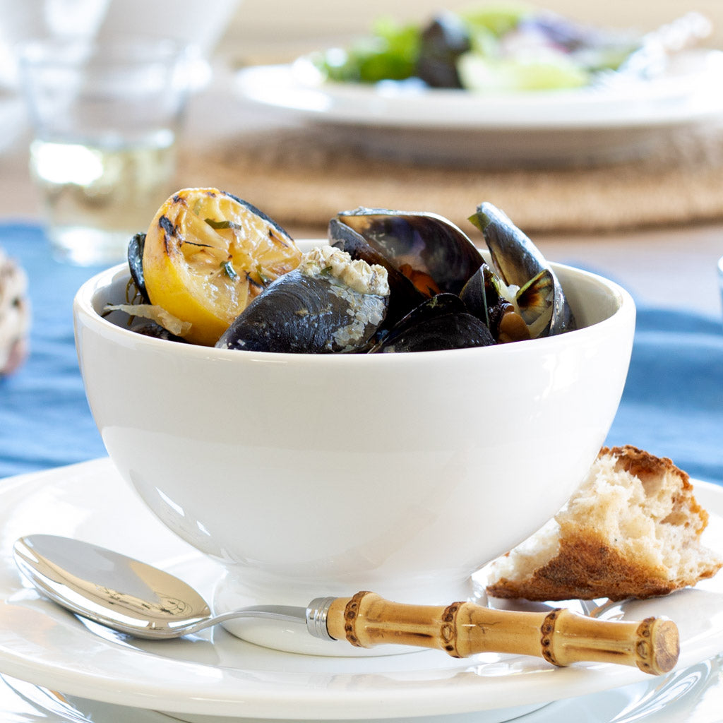 Our HG Original Footed Bowl is a classic. This beloved original is part of our HG Original Collection, which was introduced when our first store opened in San Francisco. It remains a cornerstone of our brand for its timeless appeal and impeccable craftsmanship. Crafted in Italy from high-quality ceramic, the rounded shape, generous hand-feel, and signature creamy white glaze create a classic aesthetic that can be dressed up or down. This bowl is versatile and effortlessly European, perfect for serving anything from tomato soup to cioppino and moules marinières.