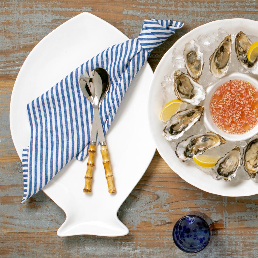 Whether you're reminded of brunch in Palm Beach or a cocktail party in St. Tropez, this serving set effortlessly brings a textural, modern feel to minimalistic tables or a chic, exotic twist to more classic settings.