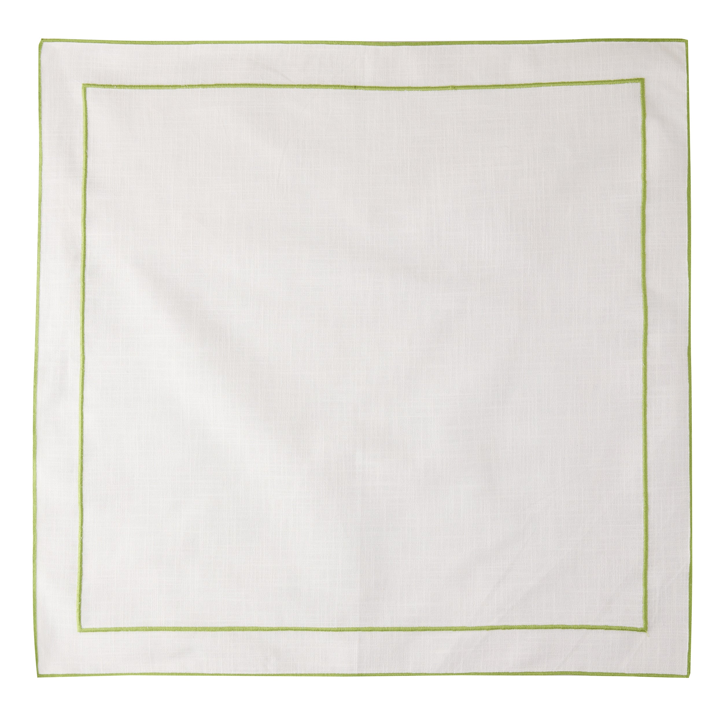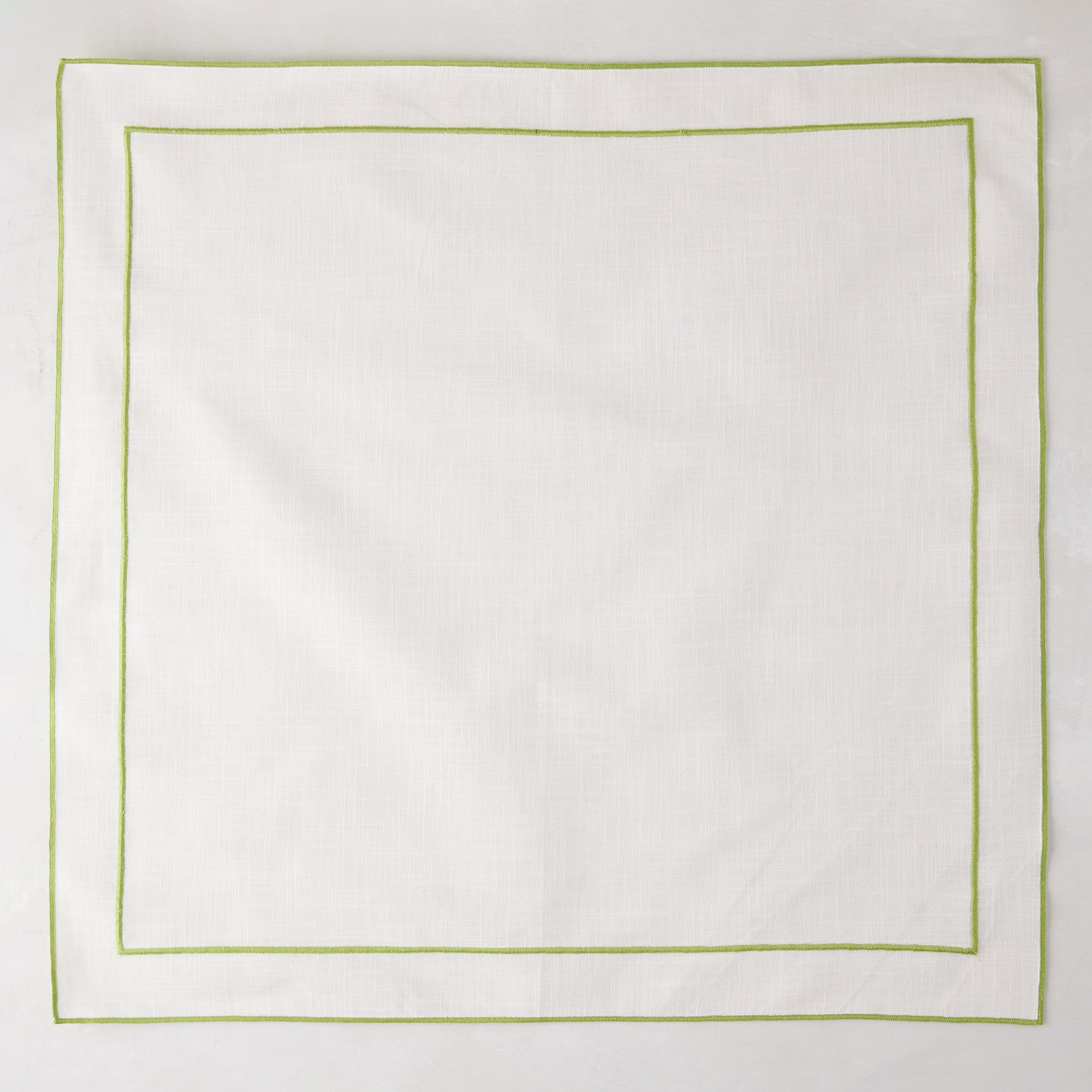 Bring a pop of color to the simplicity of a white napkin with the Double Line Embroidered Cotton Napkin in Aloe. With two lines of colorful embroidery, this napkin is the perfect way to add some style to any table.