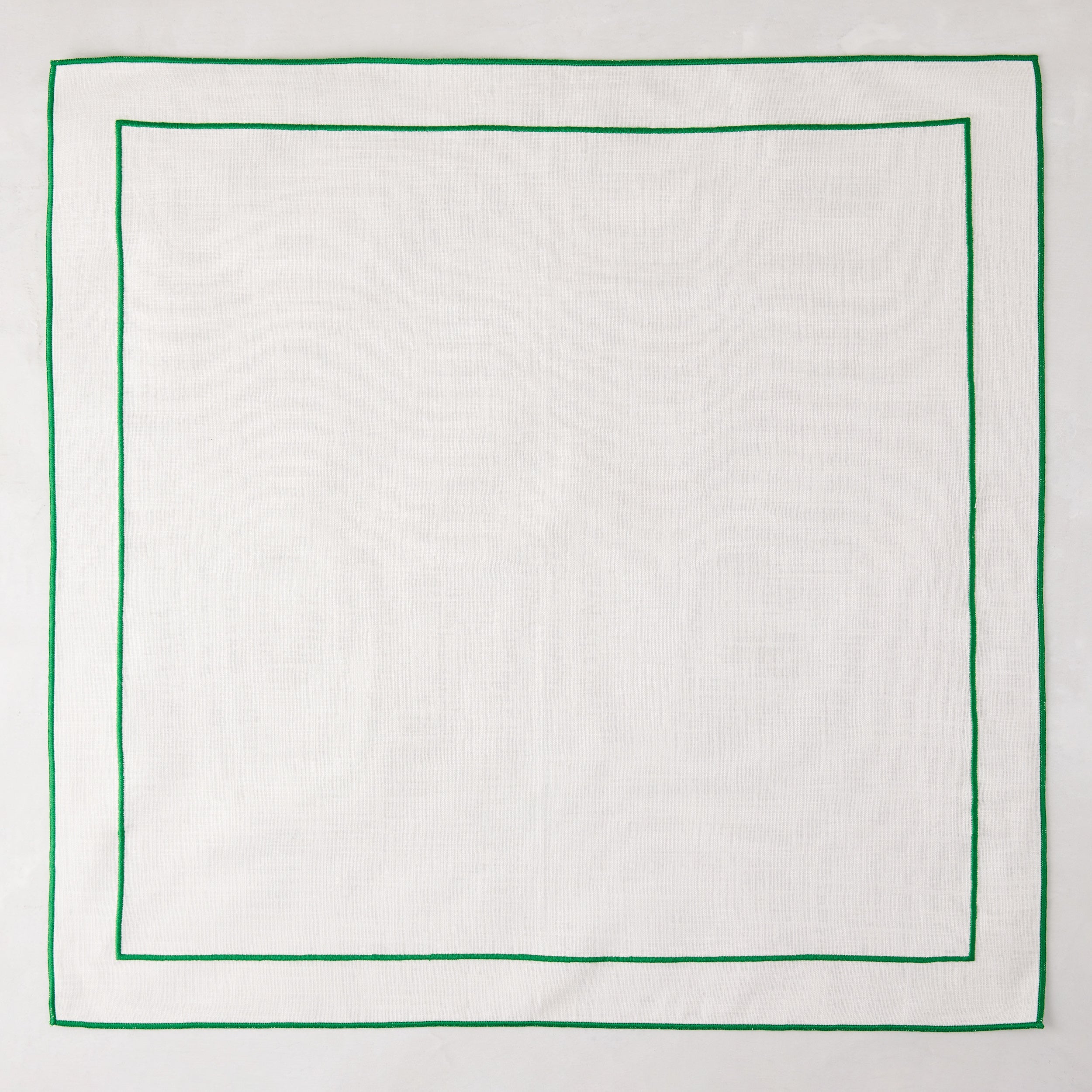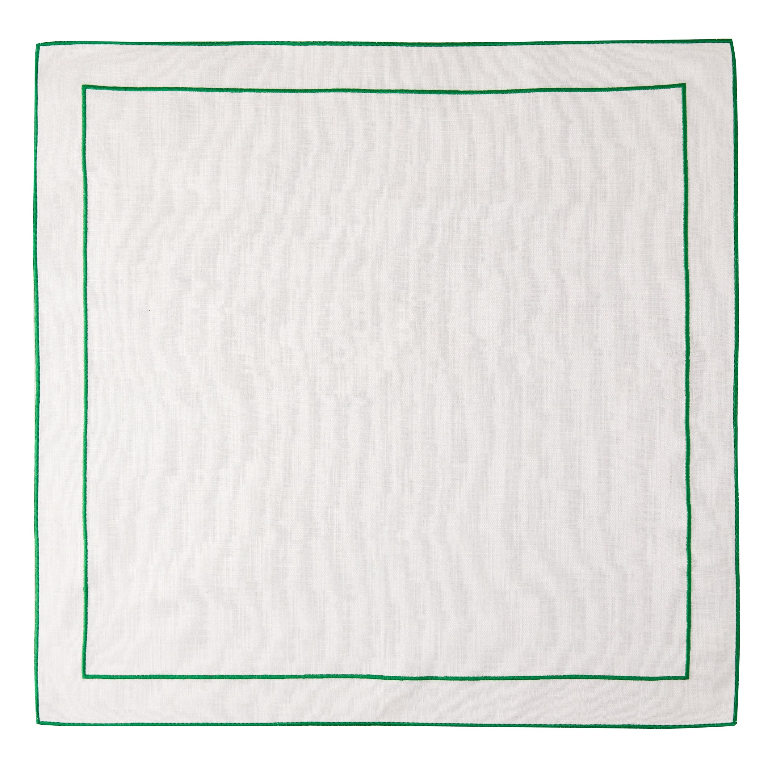 Bring a pop of color to the simplicity of a white napkin with the Double Line Embroidered Cotton Napkin in Green. With two lines of colorful embroidery, this napkin is the perfect way to add some style to any table.