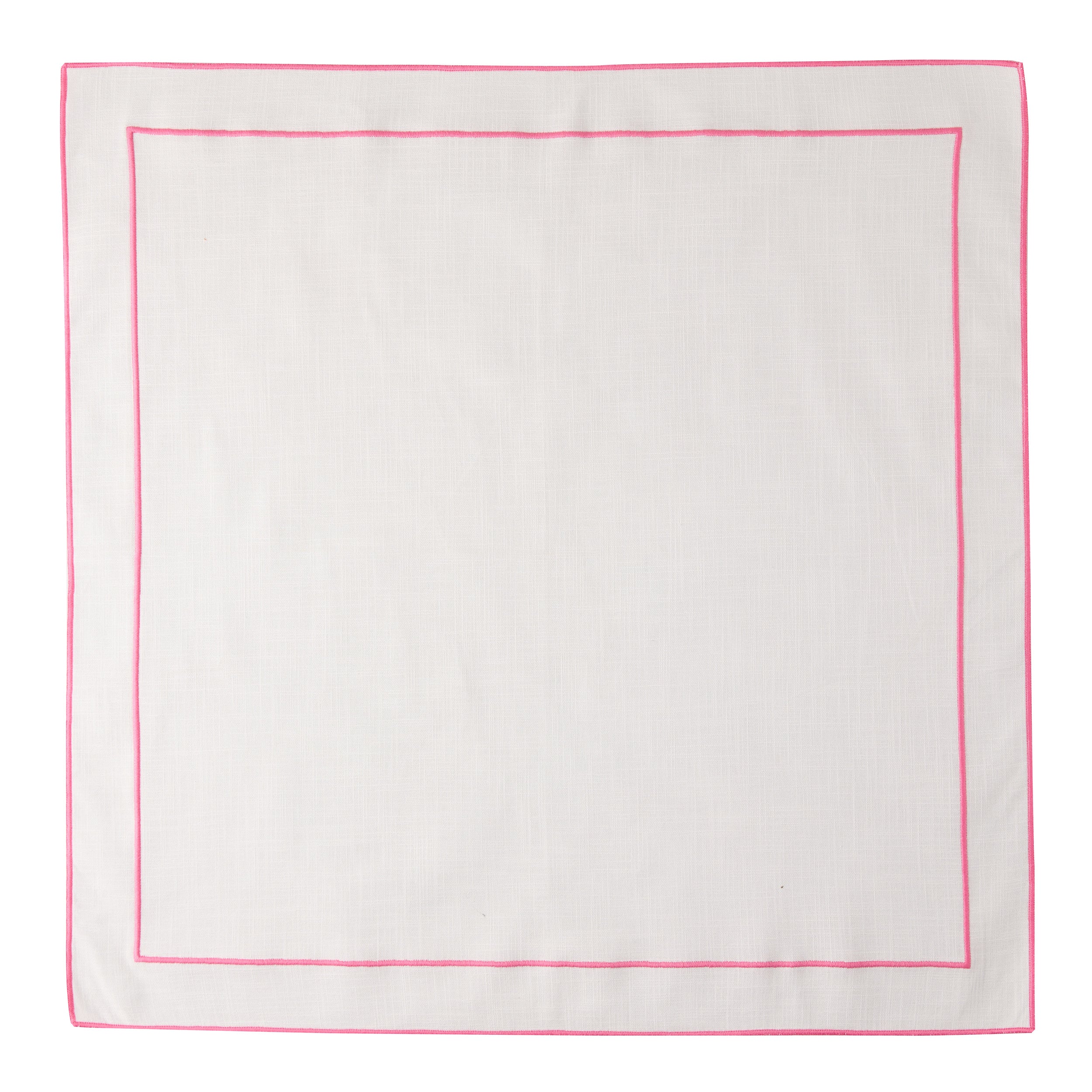 Bring a pop of color to the simplicity of a white napkin with the Double Line Embroidered Cotton Napkin in Pink. With two lines of colorful embroidery, this napkin is the perfect way to add some style to any table.