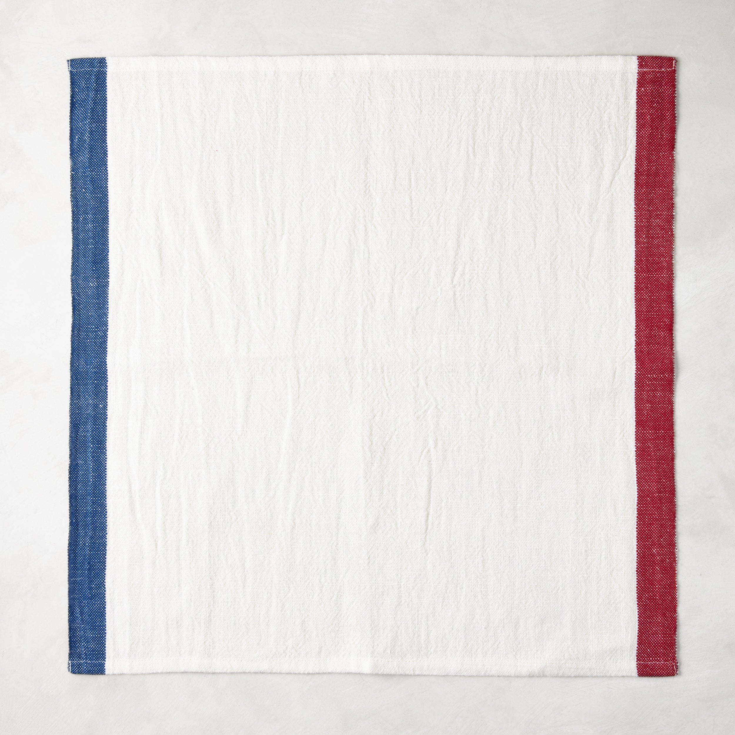 Reminiscent of nostalgic old-world France, these French Flag Border Linen Napkins only get better with time. Made of 100% Linen and slightly oversized, the material softens with each wash. The red and blue border accents are perfect for your next summer soiree.