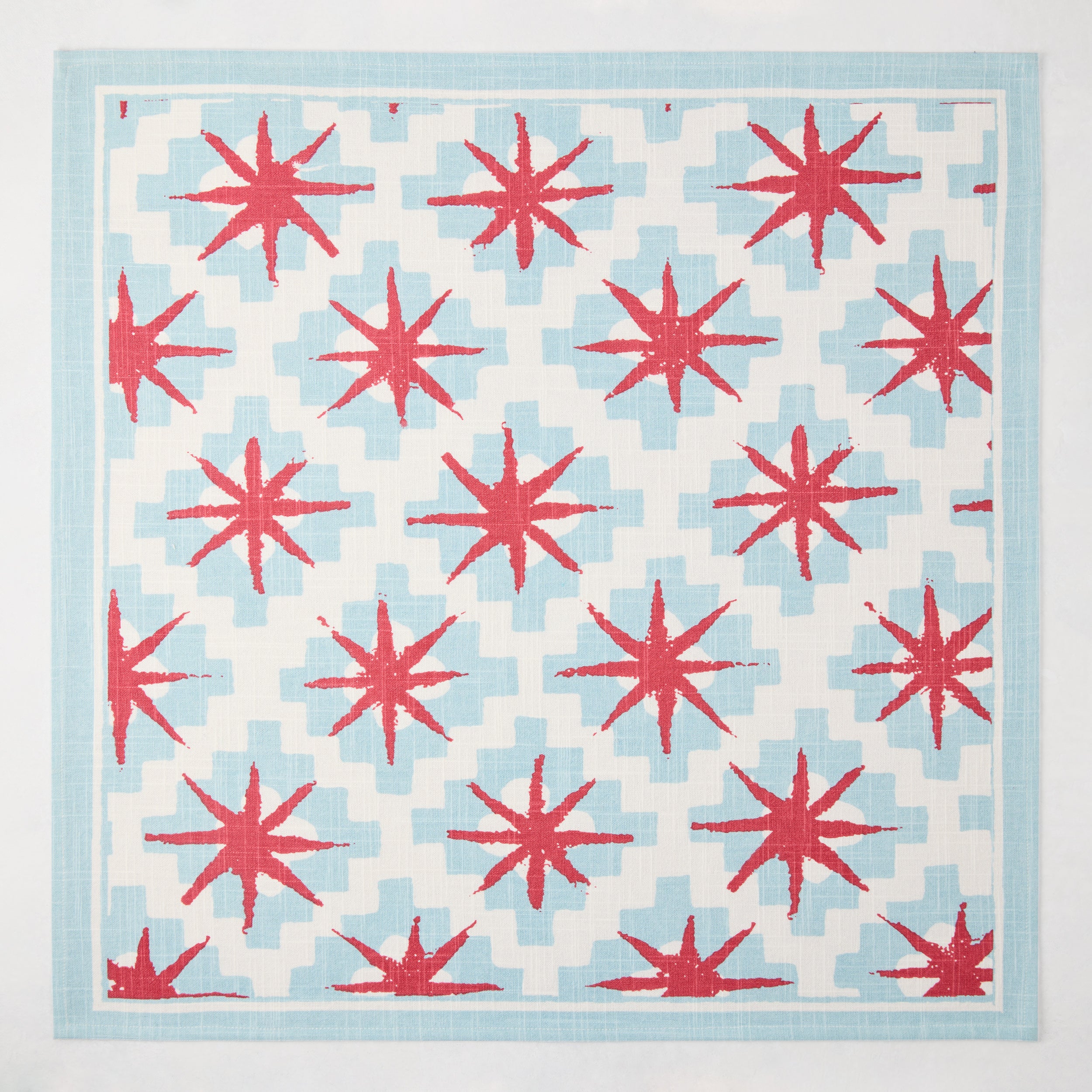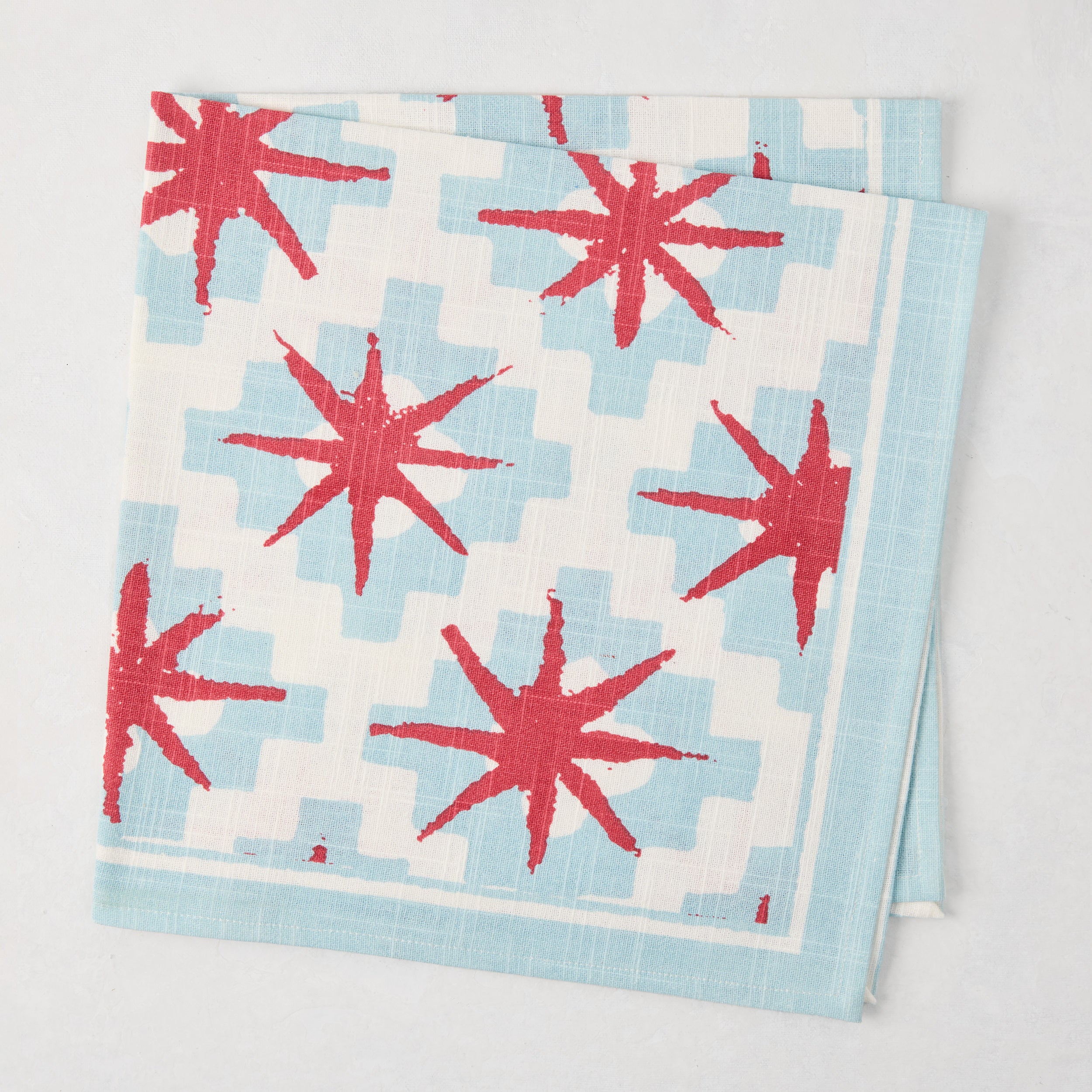 A bold, colorful addition to any table, the Blue Starburst Printed Napkin features a vibrant blue geometric design with a painterly red starburst. Made from 100% cotton slub, the napkin offers a relaxed, textured feel with lasting durability. This eye-catching print brings energy and personality to your table setting.