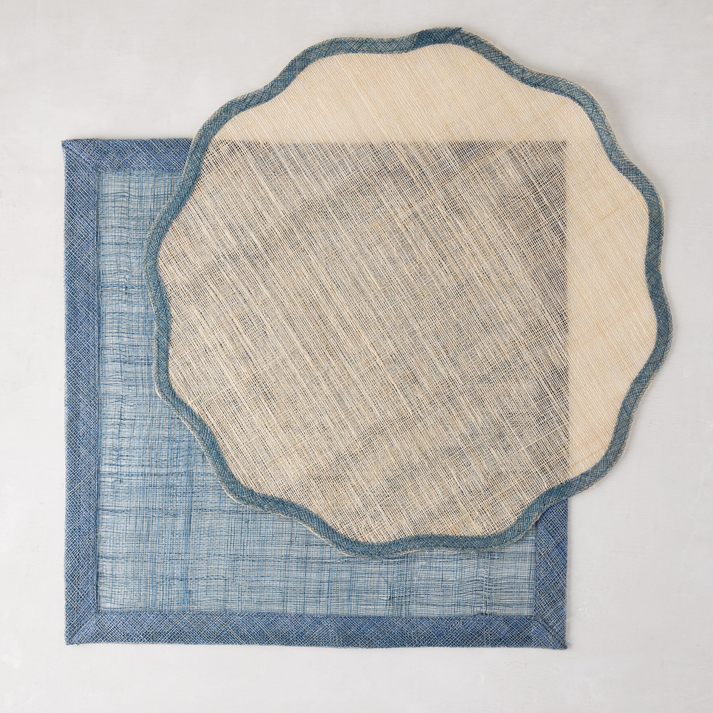 Make a statement with the Newport Placemats. Playful and unique, this collection is the perfect addition to any table setting. Handmade from Abaca fibers, these placemats are durable, slim for easy storage, and wipe clean even easier. Blue with a deeper blue border, this placemat will be the pop of color you've been looking for.