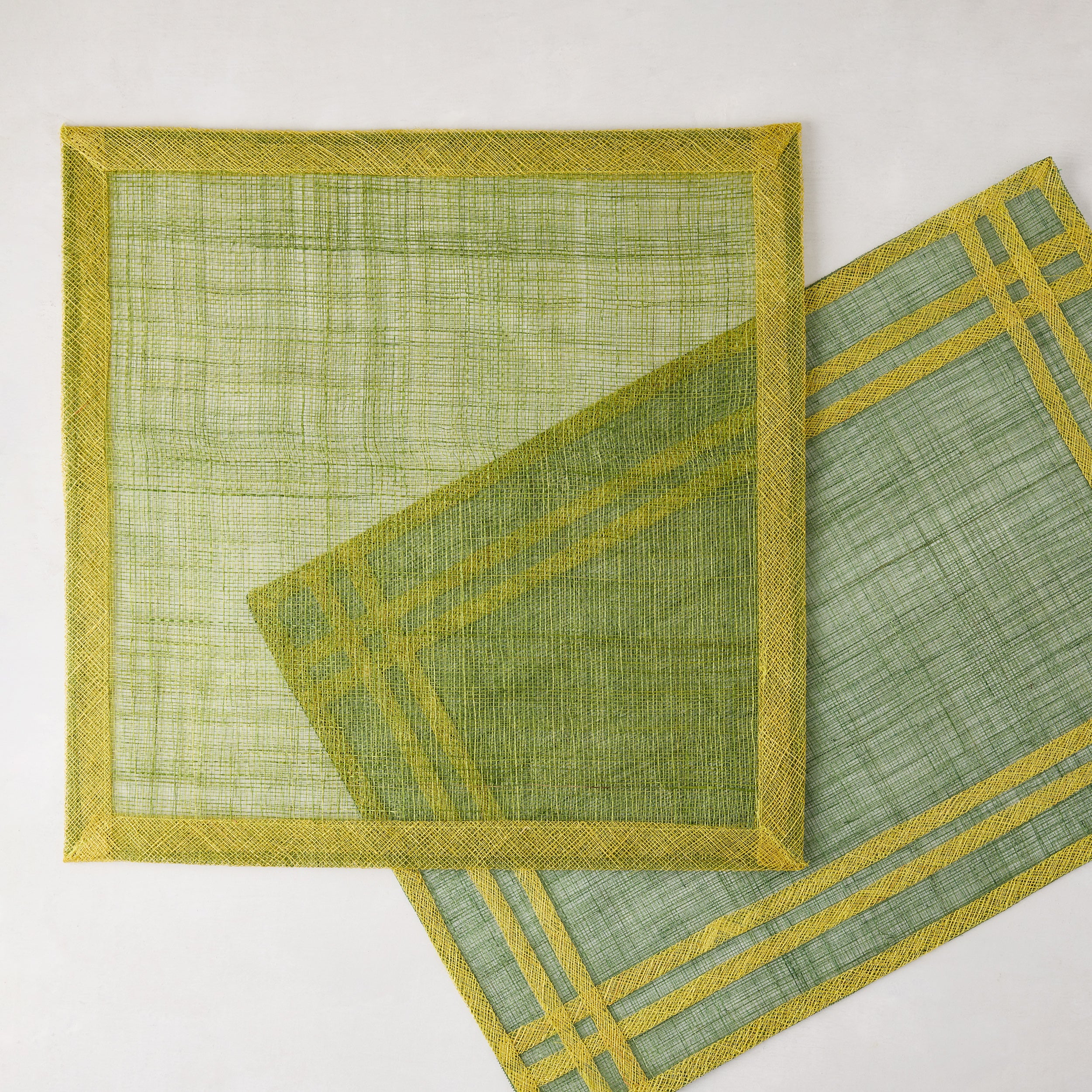 Make a statement with the Newport Placemats. Playful and unique, this collection is the perfect addition to any table setting. Handmade from Abaca fibers, these placemats are durable, slim for easy storage, and wipe clean even easier. Green with a complimentary lime green border, this placemat will be the pop of color you've been looking for.