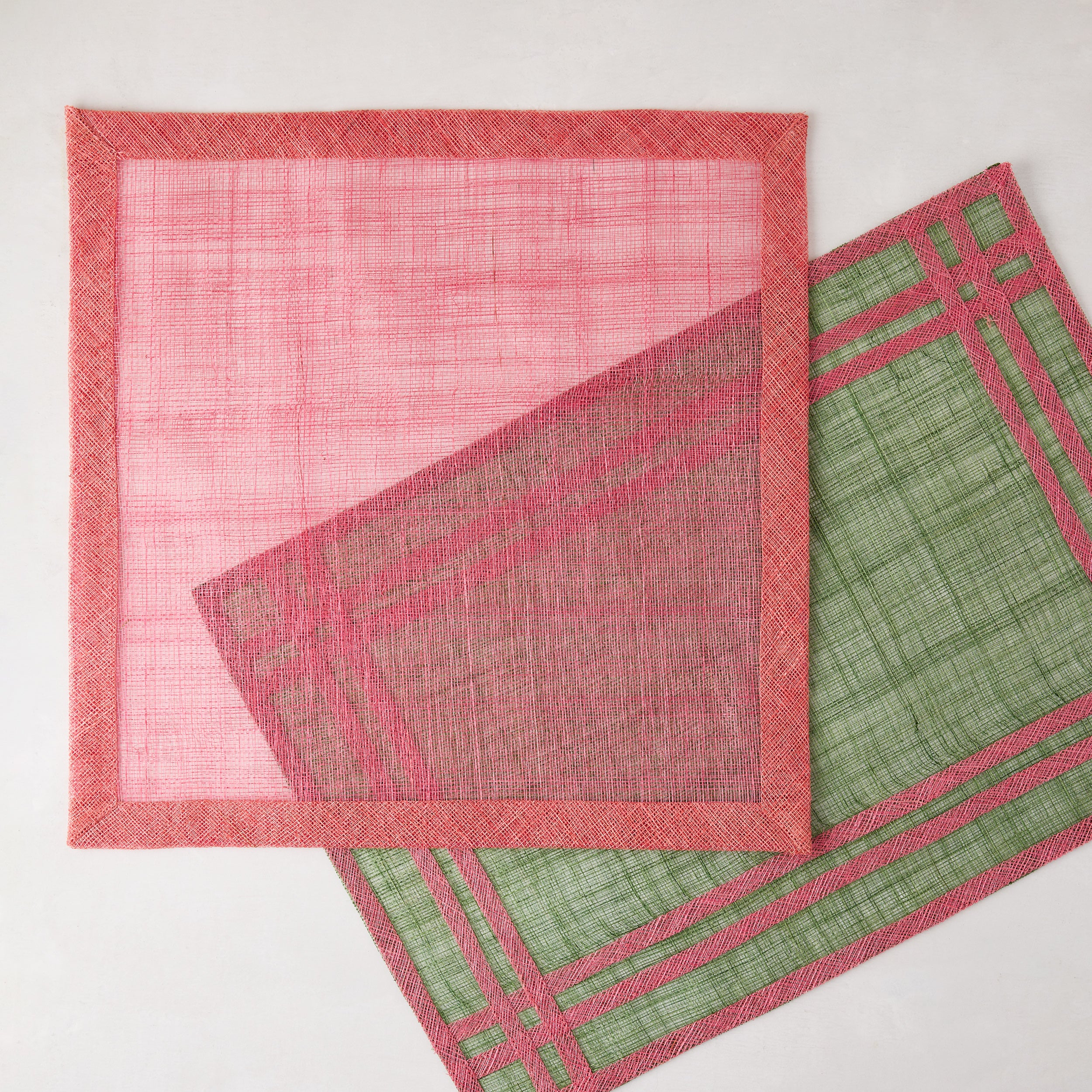 Make a statement with the Newport Placemats. Playful and unique, this collection is the perfect addition to any table setting. Handmade from Abaca fibers, these placemats are durable, slim for easy storage, and wipe clean even easier. Pink with a complimentary dark pink border, this placemat will be the pop of color you've been looking for.