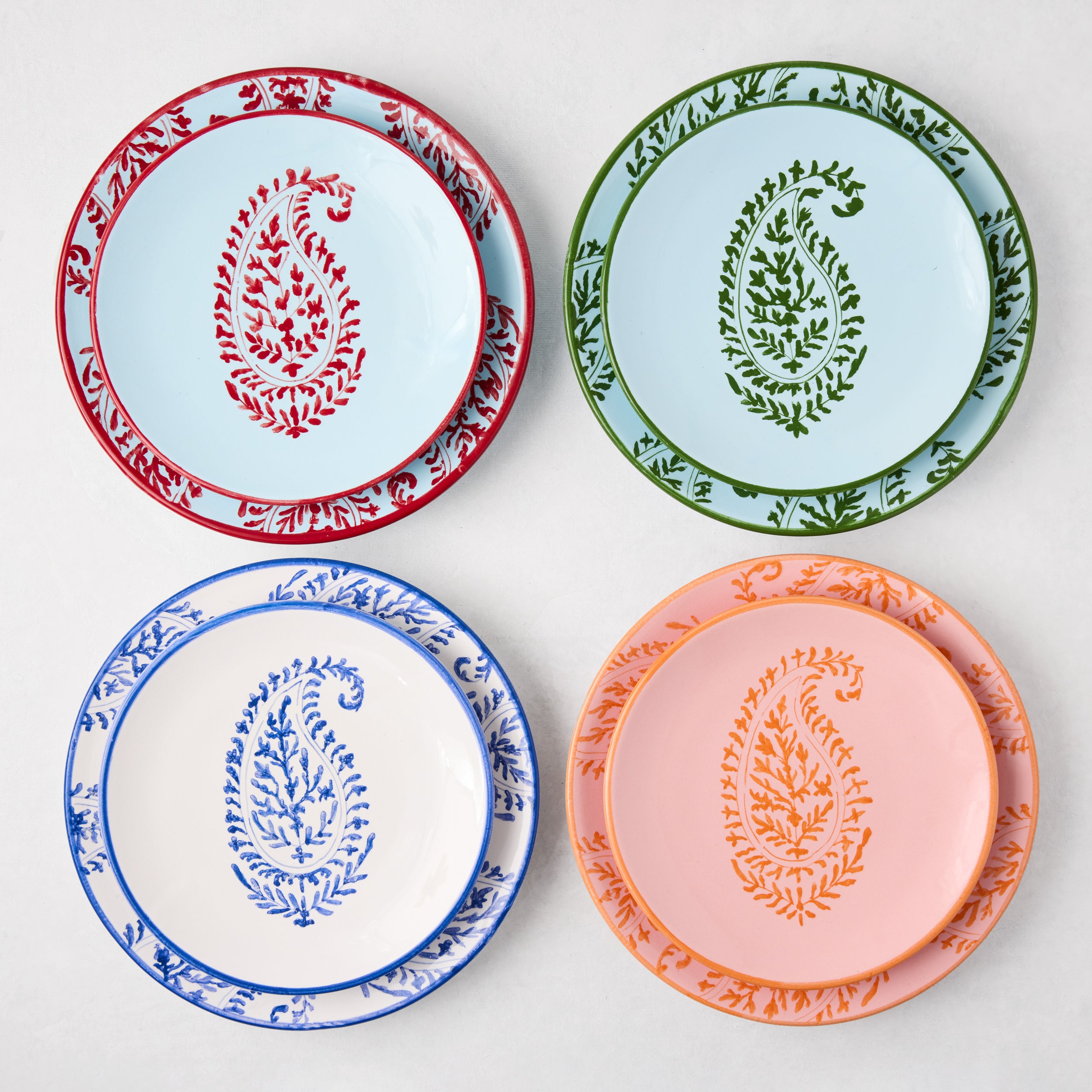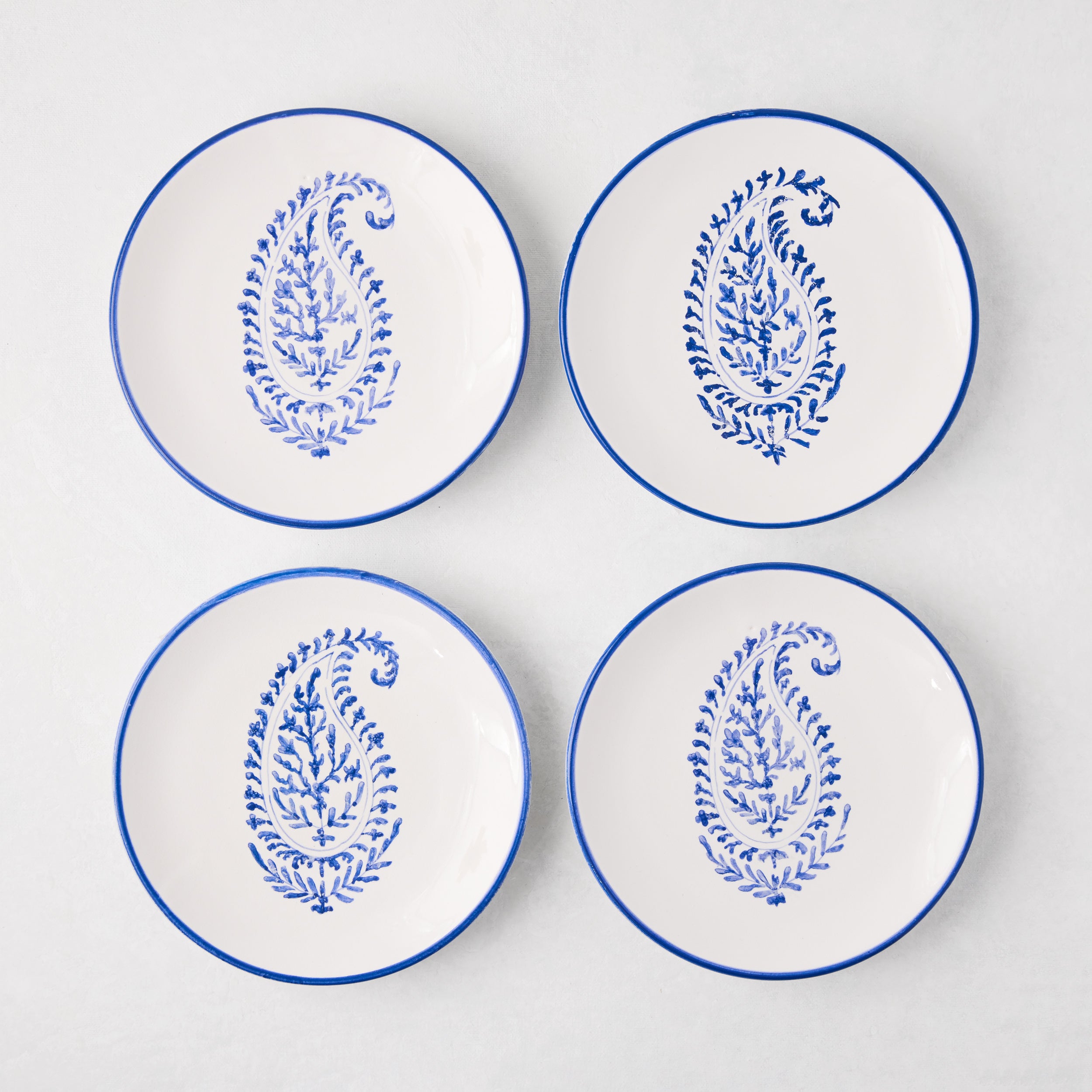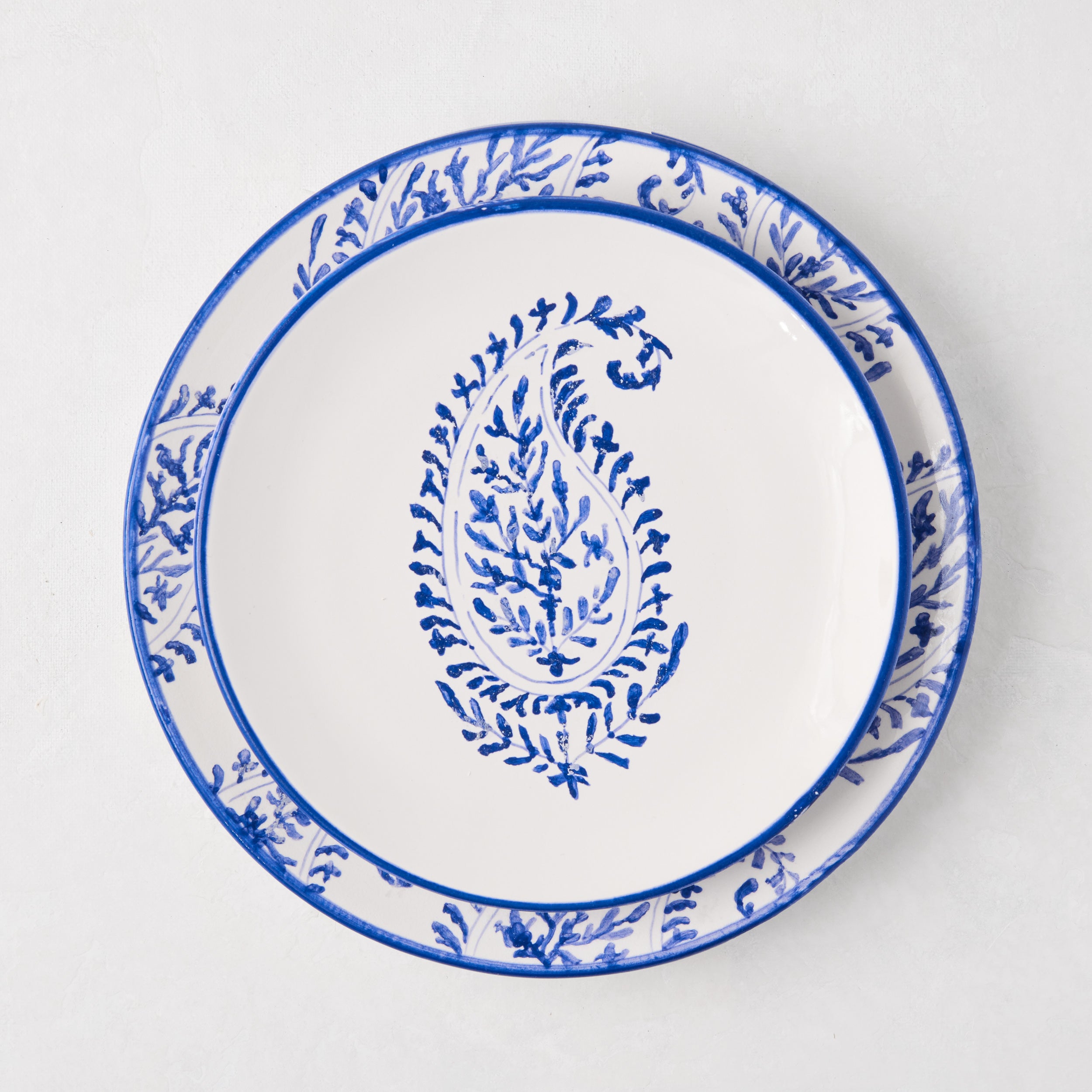 Made in Italy, each plate is hand-painted, unique, and made for mixing and matching. Inspired by a block print Peter discovered in India, the Blue Kashmir Painted Paisley Appetizer Plate is influenced by one of his most iconic prints. Timeless yet full of character, it layers beautifully into any table—adding a touch of the unexpected.