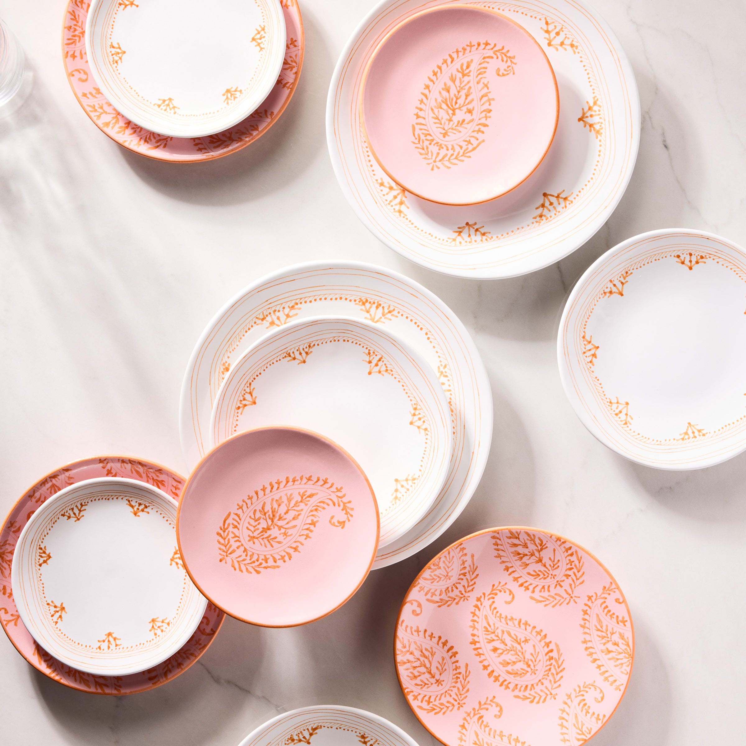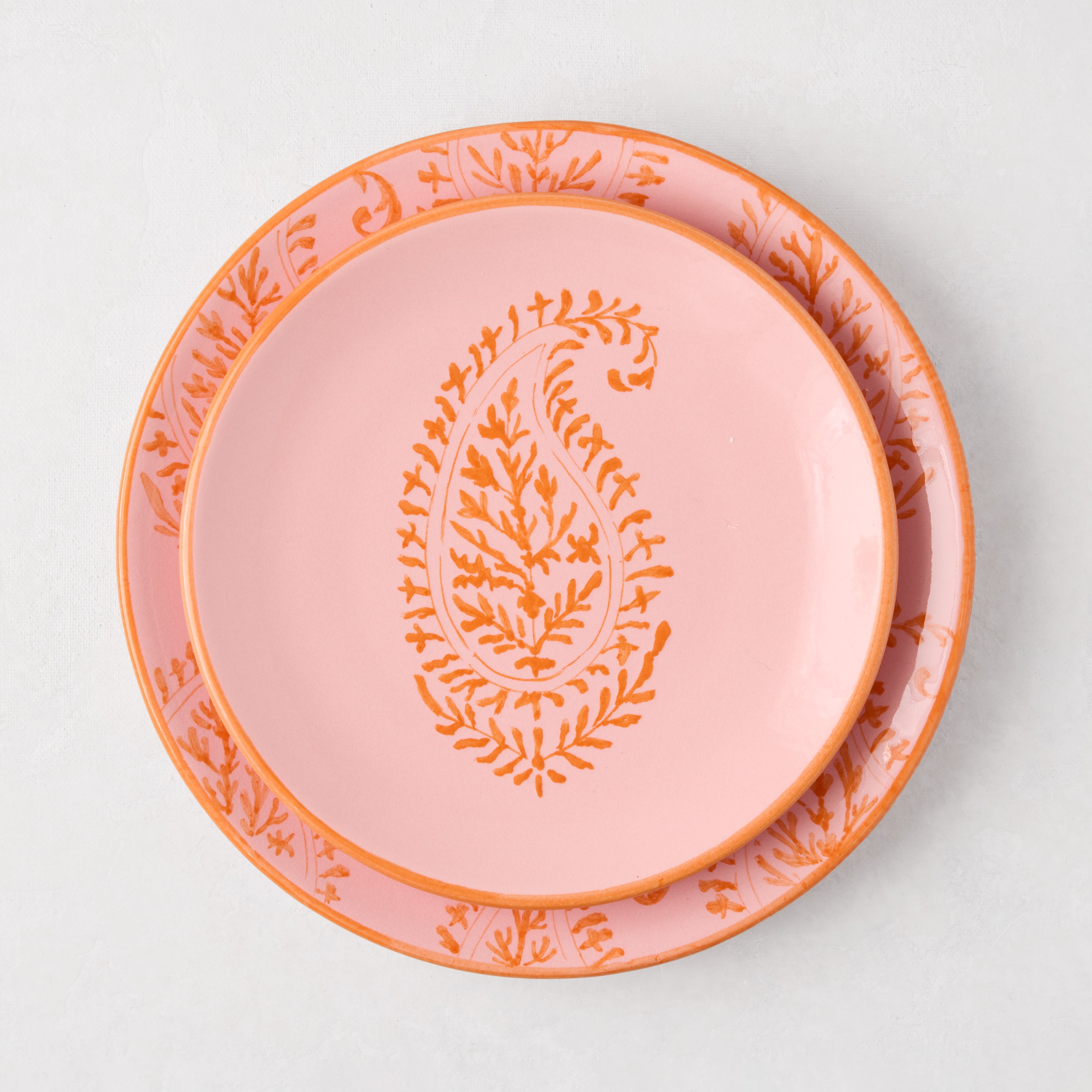 Made in Italy, each plate is hand-painted, unique, and made for mixing and matching. Inspired by a block print Peter discovered in India, the Pink Kashmir Painted Paisley Appetizer Plate is influenced by one of his most iconic prints. Timeless yet full of character, it layers beautifully into any table—adding a touch of the unexpected.